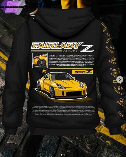 The *Premium Winter Collection Hoodie* brings sleek style and JDM vibes to life! 🚗💨 Featuring a unique “350Z design” on the back, complete with detailed car specs in both **Japanese and English** text, and the iconic “FAIRLADY” branding 💥.